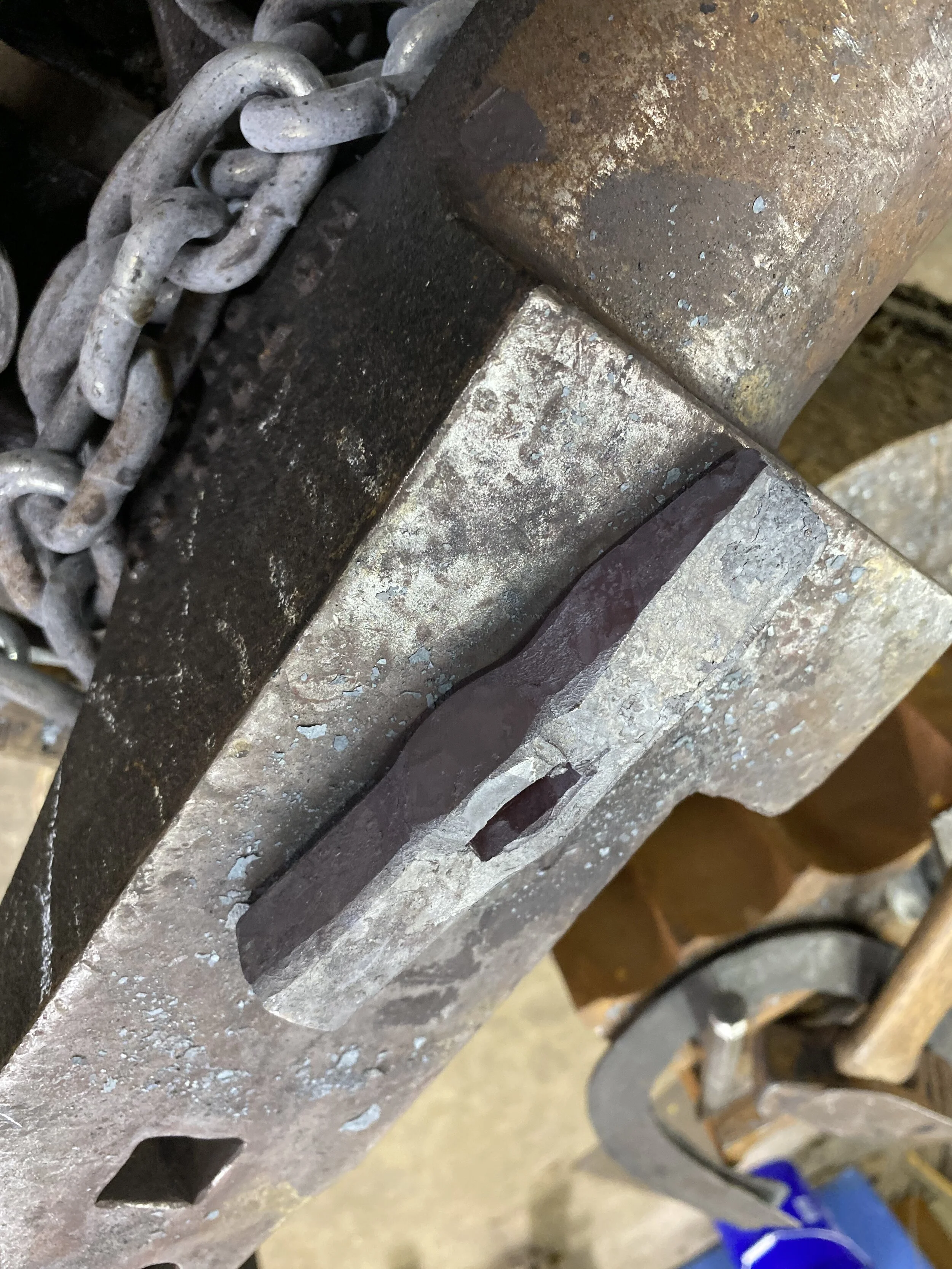 I piddled around the shop not doing much. 2 people in the forge at a time is the max it can handle. Aria and Kaleb were working there first, then ronan and I stepped up. He in drawing the tang and I worked some more on the hinges for Lord Christof’s chest.