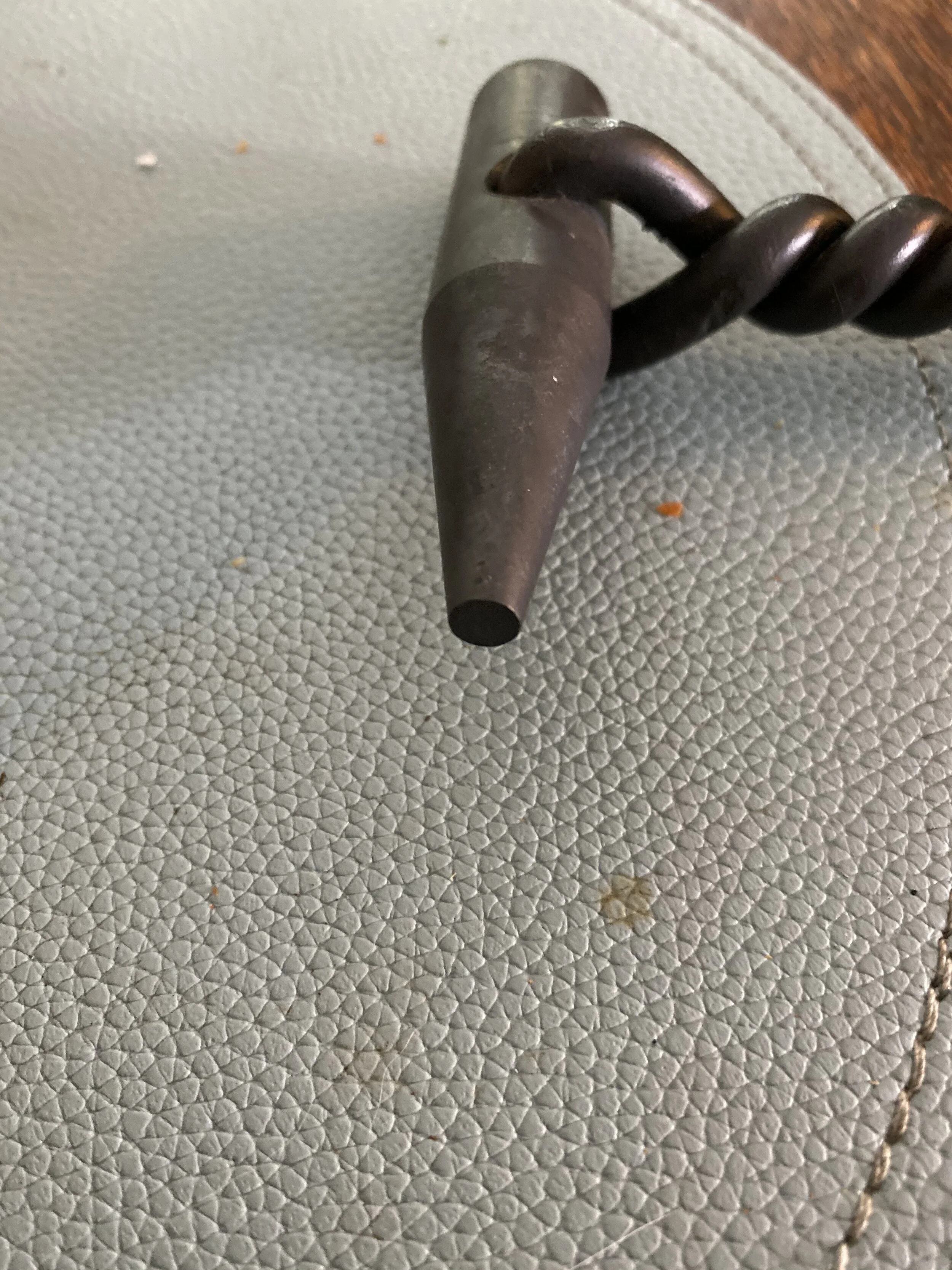 The first tool (and the one I will probably use the most) is the round punch. This tool is used to drive a hole into a piece of metal. It creates a round hole through the metal with less loss of material then drilling a hole would. It pushes the metal to the edges instead of cutting it out the way a drill bit would.